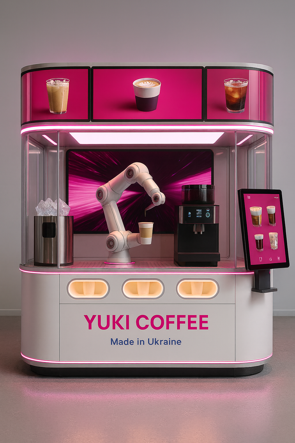 Роботизована кавова станція, яка працює як міні-кафе: готує напої з кількох компонентів, персоналізує рецепти та видає їх без участі бариста.